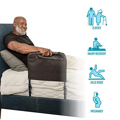 Prevent Falls: The ergonomic padded hand rail of the Bedside Safety Handle will aid you or your loved ones when transferring in and out of bed and supports up to 300 pounds; the height of the handle can be adjusted from 13 to 20 inches tall