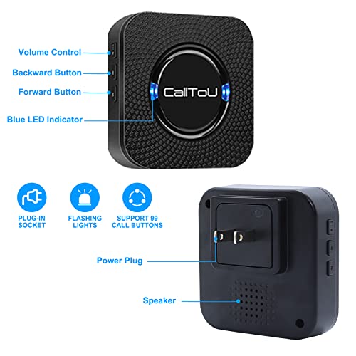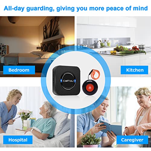 Specification: CallToU Caregiver Pager Wireless Call Bell Alert Button for Seniors/Elderly/Patients 1 Plugin Receiver 1 Waterproof Transmitter