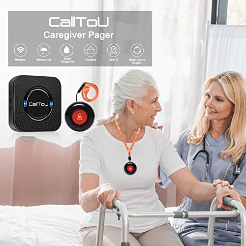 CallToU Caregiver Pager Wireless Call Bell Alert Button for Seniors/Elderly/Patients 1 Plugin Receiver 1 Waterproof Transmitter