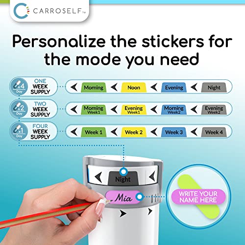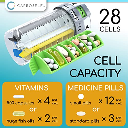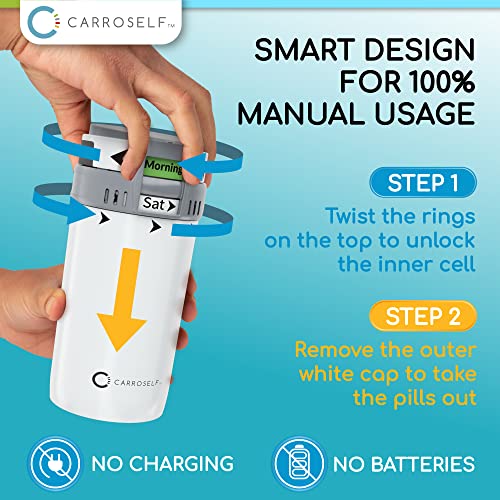 Specification: Carroself Smart Design Pill Dispenser Organizer with 4 Pills Cartridges Container, Medicine Storage Locked – Travel-Friendly