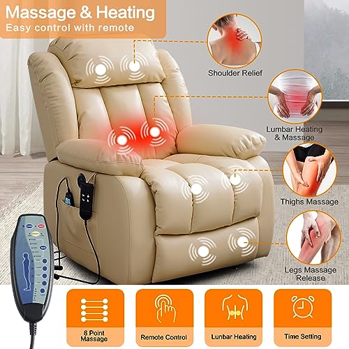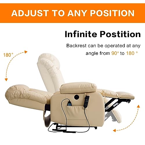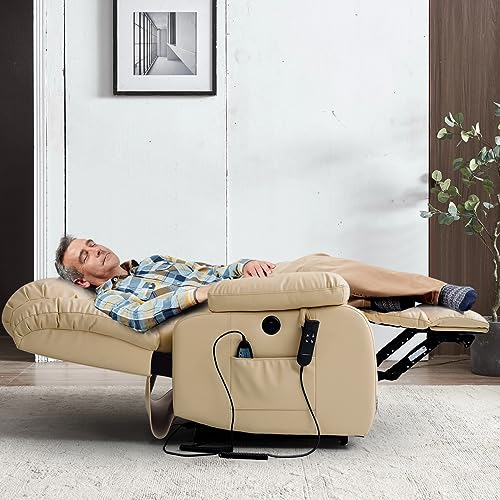 Specification: COCOLHOME Infinite Position Power Lift Chair Lay Flat Recliner Dual Motor Sleeper Chair with Massage and Heating for Elderly, USB Ports and Remote Control, Genuine Leather(Beige)