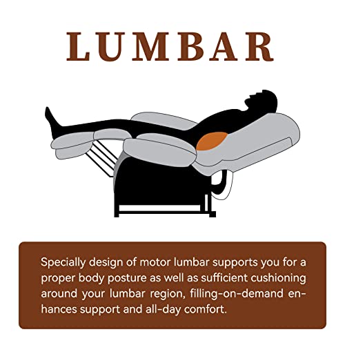 LIFT CHAIR WITH PROPER LUMBAR SUPPORT : A rare feature of lumbar support on current market, and it is very easy to achieve by 2 of all buttons on the remote control, most importantly, the lumbar support function also can works separately, and always allowing you to enjoy incredible comfort and relaxation.