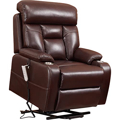 Specification: Creatuis Lift Chair with Adjustable Lumbar Support,Power Lift Recliner Chair for Elderly,Lays Flat,Three OKIN Motor,Cup Holder,Faux Leather(Brown)