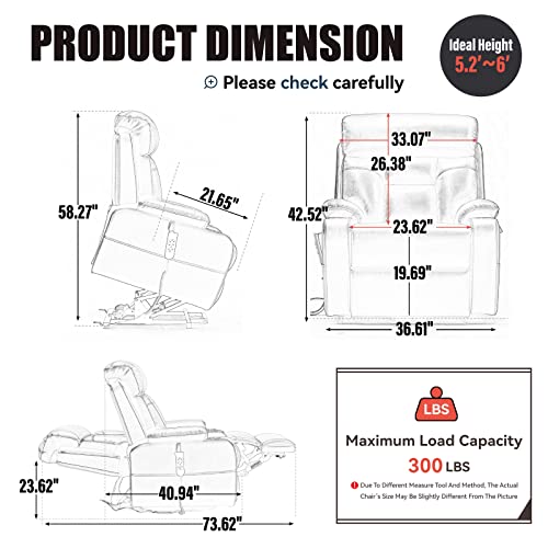 HUMANISTIC AND CONSIDERATE DETAILS: facet pocket designed on one facet of the electrical recliner chair creates an additional place to assist retailer small objects and belongs inside attain, similar to distant management, iPad and magazines. Two cup holders on each armrest might show you how to get pleasure from anytime for utilizing the chair. Ideally suited Top of Customers : 5’2’’~6’.