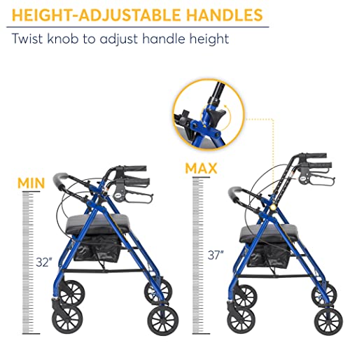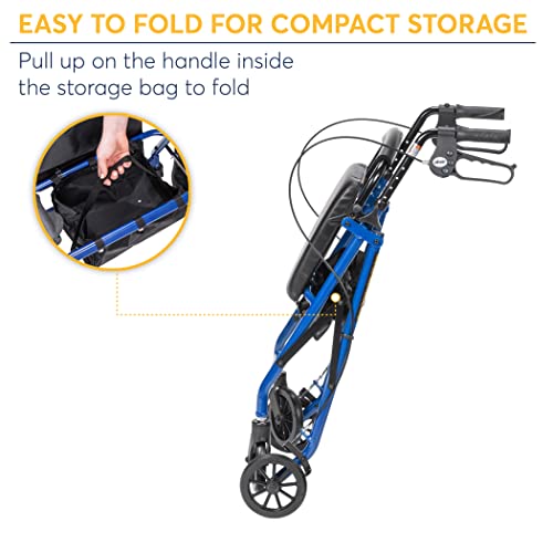 Drive Medical Aluminum Rollator Walker Fold Up and Removable Back Support, Padded Seat, 6″ Wheels, Blue