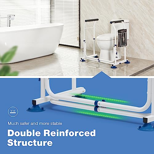 GreenChief Stand Alone Toilet Safety Rails 350lbs, Adjustable Toilet Frame with 4 Suction Cups, Medical Toilet Arms to Help Stand, Padded Toilet Handles for Elderly, Bariatric, Handicap and Disabled