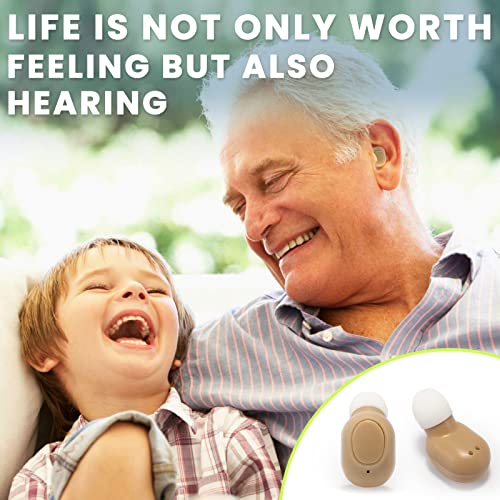 ✅【Invisible Designed Hearing Amplifiers】The upgraded hearing aid is more ergonomically designed, fits the ear canal tightly, and does not distinguish between left and right ears. Other than that, this rechargeable hearing amplifier has a natural look and clean color, making it virtually invisible when worn.Since the shape fits the ear canal, the wearer does not need to worry about the hearing device falling out or being embarrassing for too obvious.