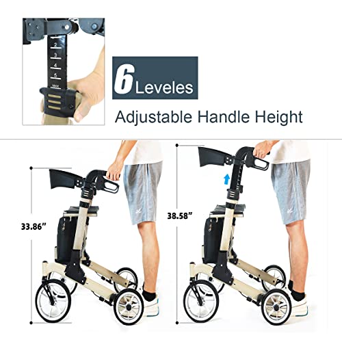 koosom 10″ Front Wheels Rollator Walkers for Seniors Adjustable Height, Rollator Walker with Seat and Brakes Fold Up Heavy Duty Mobility Walking Aid for Adult Elderly, Gold, L