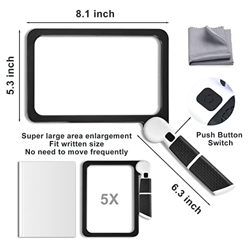 Specification: Magnifying Glass with Light 5X Magnifying Glass for Reading Handheld Folding Magnifier 48 Lights Full Page Viewing Area Perfect for Macular Degeneration Low Vision Person Gifts for Seniors Reading