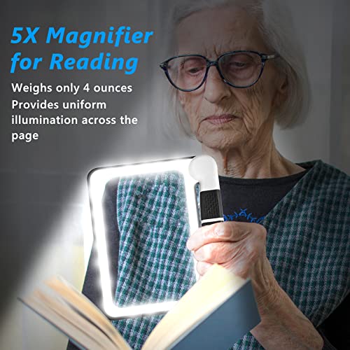 Magnifying Glass with Light 5X Magnifying Glass for Reading Handheld Folding Magnifier 48 Lights Full Page Viewing Area Perfect for Macular Degeneration Low Vision Person Gifts for Seniors Reading