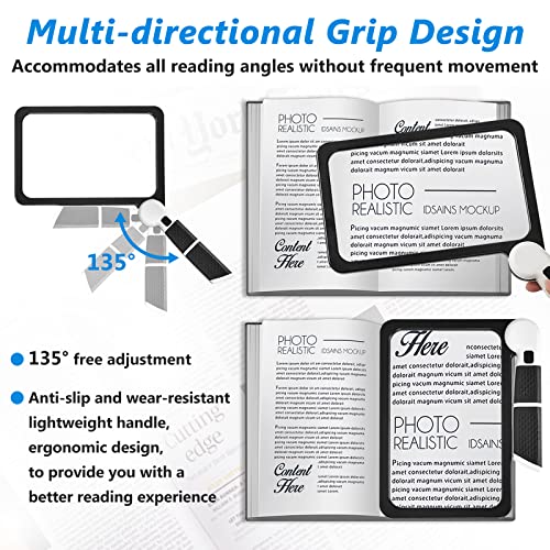 【Extremely Giant Viewing Space】The massive, light-weight web page magnifier offers even illuminations throughout the web page. The lens is lagre as much as 7.3″ x 4.3″, protecting a fairly massive viewing space with out shifting your hand incessantly.