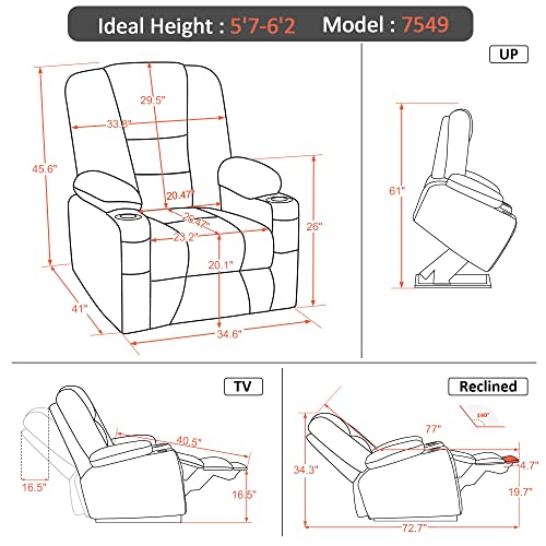 Specification: MCombo Large Power Lift Recliner Chair with Massage and Heat for Big and Tall Elderly People, Fabric 7549 (Large, Grey)