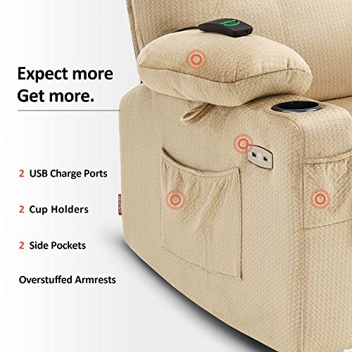 MCombo Medium Power Lift Recliner Chair Sofa with Massage and Heat for Elderly, 3 Positions, Cup Holders, and USB Ports, 2 Side Pockets, Fabric 7040 (Medium, Beige)