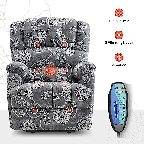 MCombo Medium Power Lift Recliner Chair Sofa with Massage and Heating, 3 Positions, USB Ports, Control Buttons for Elderly People, Fabric 7091