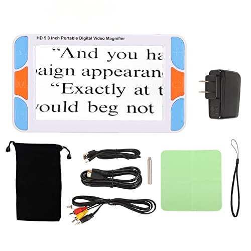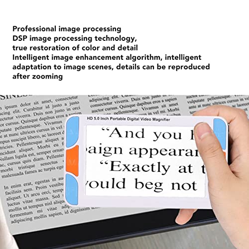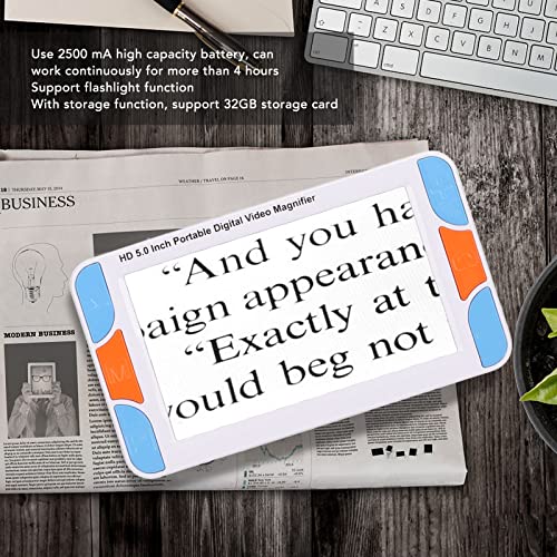 Specification: Portable Digital Magnifier, 5.0in HD LCD Screen Electronic Vision Aids, Handheld Reading Magnifier, 3X to 48X Times Magnification, for Low Vision, for Elderly (US Plug)