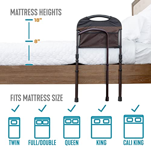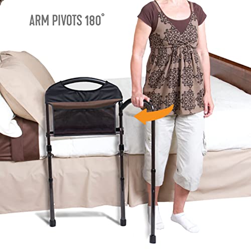Stander Mobility Rail, Bed Rail and Assist Bar with Swing-Out Safety Handle for Adults, Seniors, and Elderly, Transfer Rail for Bed with Floor Support Legs and Pouch, Standing Assist, Mobility Aid