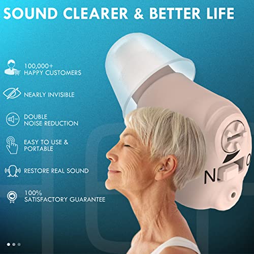 Tumin Rechargeable Hearing Aids for Seniors, Completely-in-Canal Invisible Hearing Amplifiers Earbuds for Elderly, Noise Cancelling Hearing Assist with Magnetic Contact Charging Box