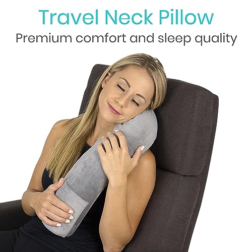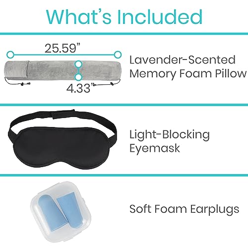 Whether or not touring by aircraft, prepare, automobile or bus, the Xtra-Consolation journey pillow equipment aids in relieving discomfort when sleeping and resting upright. The lavender reminiscence foam pillow contains a bendable rod that enables it to be twisted for optimum help, an adjustable toggle to safe it in place and a pocket to carry your cellphone, glasses and extra. Extremely-soft, the zippered velvet cowl is detachable for simple cleansing. This whole journey set additionally features a snug eye masks and one pair of earplugs in a compact case to dam out each distraction. Relaxation and Journey in Consolation: Best for automobile and airplane journey, the Xtra-Consolation journey pillow equipment features a twist journey pillow for optimum help, a cushty eye masks for blocking out mild and distractions and one set of earplugs for noise discount. The journey equipment can also be nice for resting at house, Versatile Twist Bolster: Offering distinctive help for the top and neck, the Xtra-Consolation bendable bolster pillow options an inside bendable aluminum rod, permitting the pillow to be repositioned for optimum consolation, minimizing pressure and stress whereas resting throughout a flight, a protracted drive or just enjoyable at house. Tender and Supportive: Light-weight for simple portability, the bendable headrest is crammed with a resilient purple reminiscence foam that’s flippantly scented with lavender to advertise rest. The machine-washable velvet cowl is ultra-soft and breathable permitting warmth to dissipate so the journey cushion stays cool and cozy. The duvet additionally features a pocket for storing equipment or your cellphone and an adjustable toggle twine for securing the pillow in place. Equipment to Cut back Each Distraction: Making comfortably resting on lengthy flights simpler, the journey equipment features a padded eye masks that makes use of an elastic strap to carry it securely in place whereas blocking out mild and different distractions. Two foam earplugs with a compact case are additionally included to cut back ambient noise for higher relaxation whereas